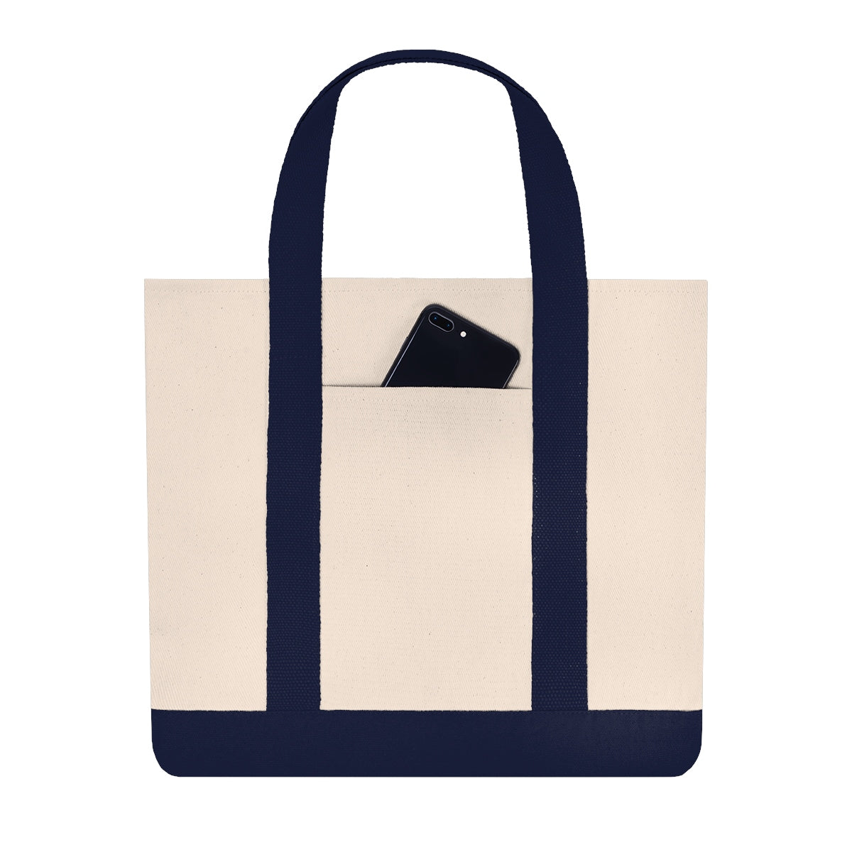 Whether traveling to exotic lands or making a run to the grocery store, don't forget this long-lasting, durable canvass bag. It folds up easily and comes with a deep exterior pocket, providing a safe place to put your keys or phone while shopping.